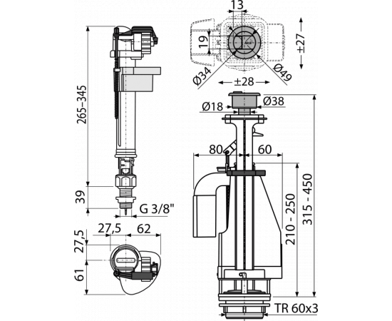 Минимальное количество для товара "SA08ASK 3/8" CHROM Выпускной комплект с двойной кнопкой металл нижняя резьба 3/8 ALCA" 1.