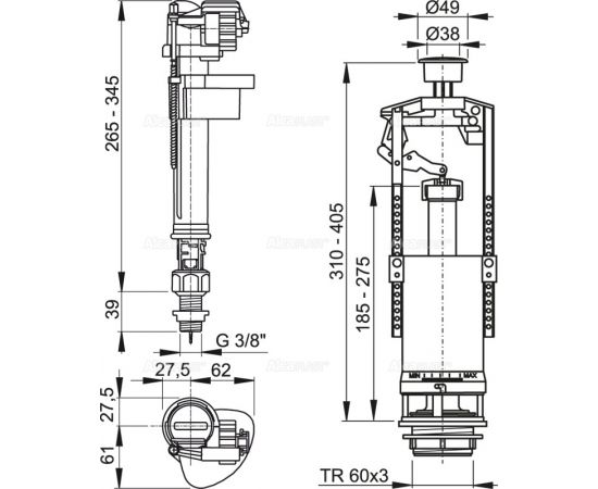Минимальное количество для товара "SA2000S 3/8" CHROM Выпускной комплект со стоп кнопкой нижняя пластик резьба 3/8 ALСA" 1.