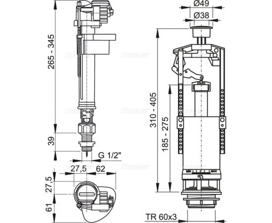 Минимальное количество для товара "SA2000SK 1/2" CHROM Выпускной комплект со стоп кнопкой нижняя 1/2 металл резьба ALCA" 1.