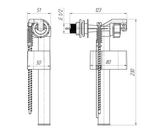 WC7040 Сливной механизм АНИ (шток ручка белая)