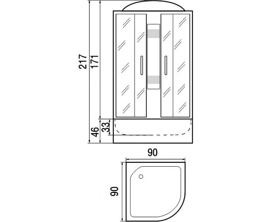 Душевая кабина «River Amur 90/46 МТ» высокий поддон 90*90*217 (с крышей)