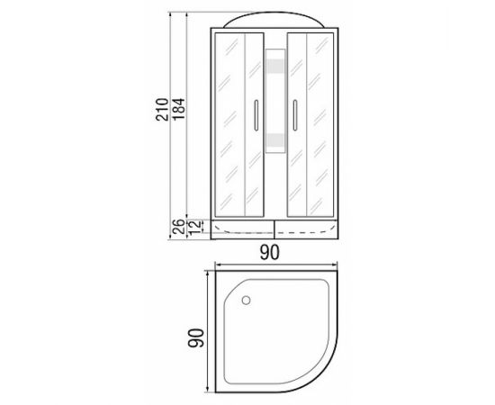 Минимальное количество для товара "Душевая кабина «River Desna 90/26 ТН» низкий поддон 90*90*210 (с крышей)" 1.