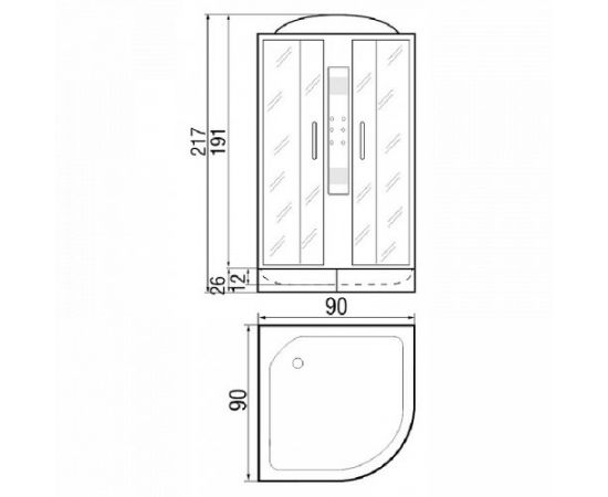 Минимальное количество для товара "Душевая кабина «River Lena 90/26 МТ» низкий поддон 90*90*217 (с крышей)" 1.