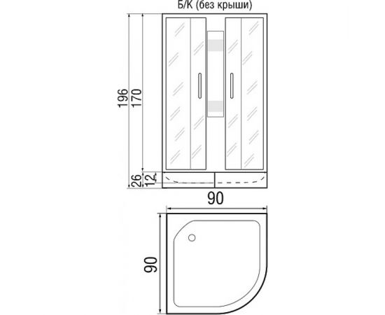 Минимальное количество для товара "Душевая кабина «River Lena Б/К 90/26 МТ» низкий поддон 90*90*196 (без крыши)" 1.