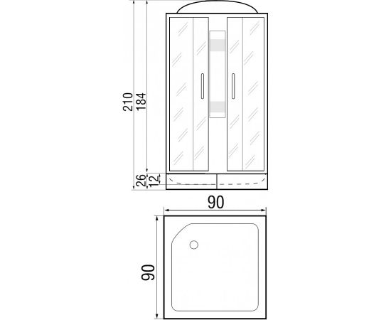Минимальное количество для товара "Душевая кабина «River Quadro 90/26 МТ» низкий поддон 90*90*210 (c крышей)" 1.