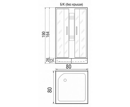 Душевая кабина «River Quadro Б/К 80/26 МТ» низкий поддон 80*80*190 (без крыши)
