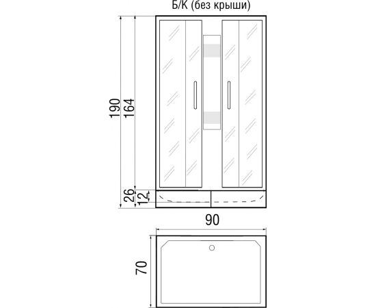 Душевая кабина «River Quadro Б/К 90/70/26 МТ» низкий поддон 90*70*190 (без крыши)