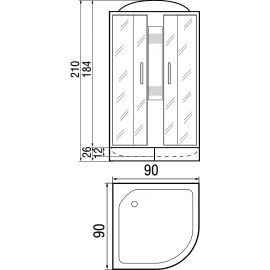 Душевая кабина «River Nara Light 90/46 МТ» высокий поддон 90*90*210 (с крышей)