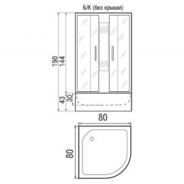 Душевая кабина «River Nara Light Б/К 80/15 МТ» низкий поддон 80*80*190 (без крыши)
