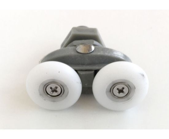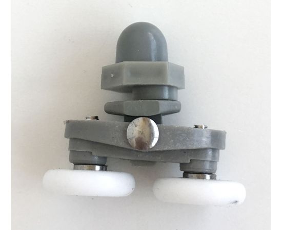 комплект серого цвета из 8-ми двойных шарнирных роликов, не регулируемых по высоте. D ролика 23 мм D отверстия в стекле 11,5 мм Вынос от центра ролика до центра стекла 20 мм Отступ от края стекла до центра отверстия не играют роли, с эксцентриковой втулкой крепления стекла.