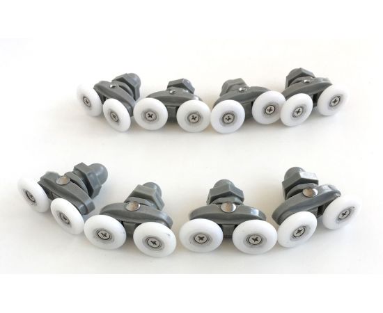 Ролики для дверей душевых кабин комплект 8 роликов (4 верхних -двойные и 4 нижних двойные) диаметр колеса 25мм ZM-0832-8
