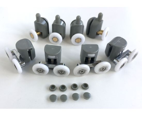 Ролики для дверей душевых кабин комплект 8 роликов (4 верхних -двойные и 4 нижних двойные хром) диаметр колеса 23мм ZM-0836-8
