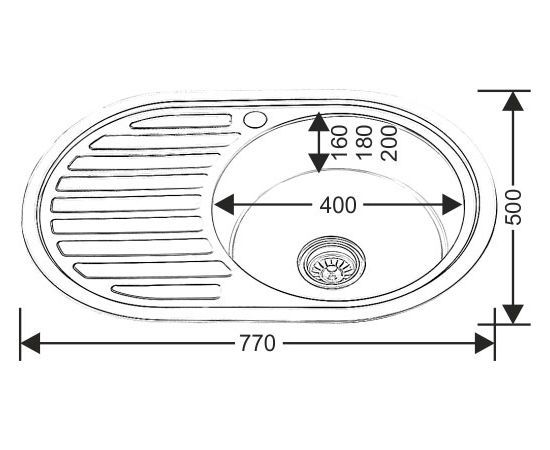 Мойка 7750 U MELANA 0,6/180 врезная овальная с сифоном (124 tb *12)