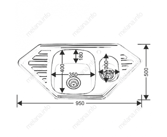 Мойка 9550C MELANA 0,8/180 1,5-я чаша врезная угловая с сифоном (222 С t *7)