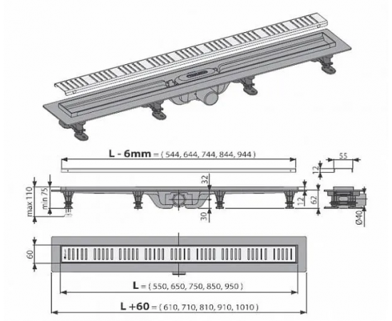 Минимальное количество для товара "APZ10- 650 Black Водоотводящий желоб с перфорированной решеткой (черный - матовый)" 1.