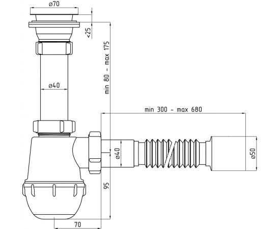 С0115 Сифон Ани 1-1/2" х 40 с гибкой трубой 40х40/50