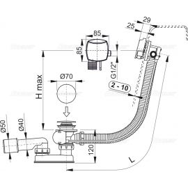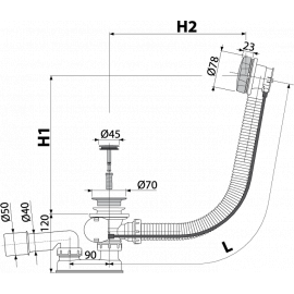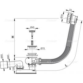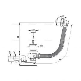 A55KM Сифон для ванны автомат комплект металл 57 см ALCA