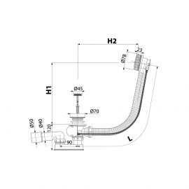 A55K Сифон для ванны автомат комплект металл 57 см ALСA (RUS)