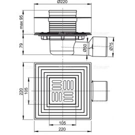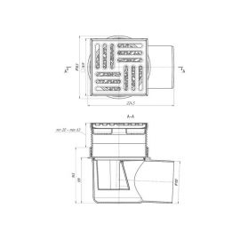 APV3344 Сливной трап 105×105/50/75,боковой подыод, решетка нержавеющая сталь, 2-х урови...