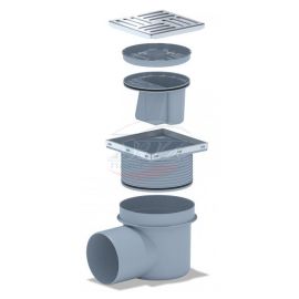 TQ1612 Трап АНИ горизонтальный выпуск 110, регулируемая решетка 15 х15 нержавейка