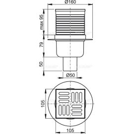 APV32 Сливной трап 105×105/50, прямой подвод, решетка нержавеющая сталь, гидрозатвор ко...