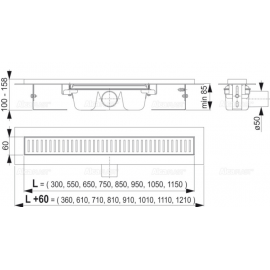 APZ12-850 Водоотводящий желоб с порогами для решетки или под плитку Optimal Alca