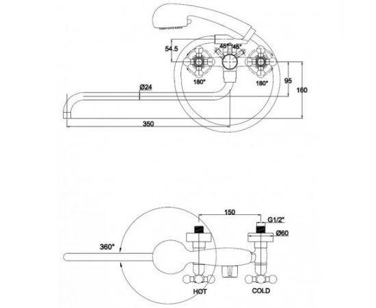 11155 Смеситель KAISER Carlson Lux ванна крест керамика (картридж/переключатель)