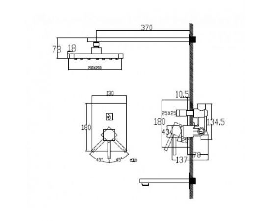 25270 Смеситель KAISER Quadris скрытый монтаж с пер и верхним душем