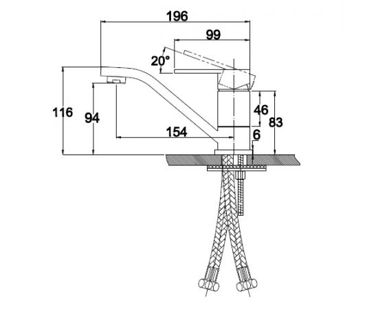 00066 Смеситель KAISER ECO кухня бок (излив гибкий) Ø35