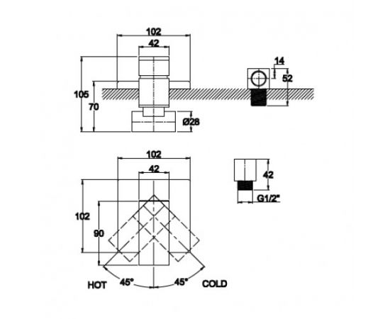 00055 Смеситель KAISER Eco для ванны встр перекл Betta Ø 35 L-40 cm