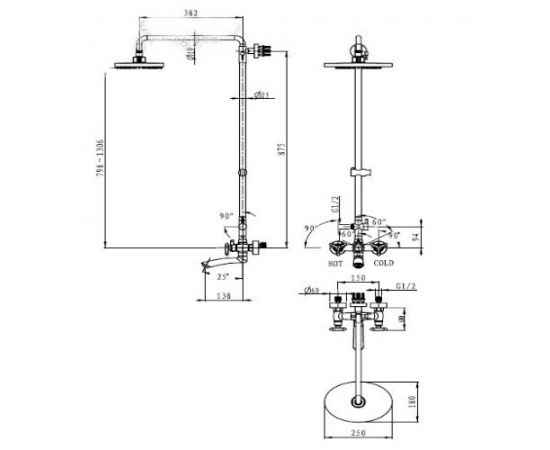 Минимальное количество для товара "57288Br Bronze Душевая система KAISER Trio 3-листник"