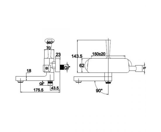 00022 Смеситель KAISER Eco для ванны короткий нос Ø 35