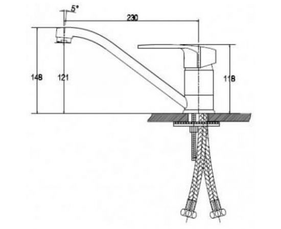 00066 Смеситель KAISER ECO кухня бок (излив гибкий) Ø35