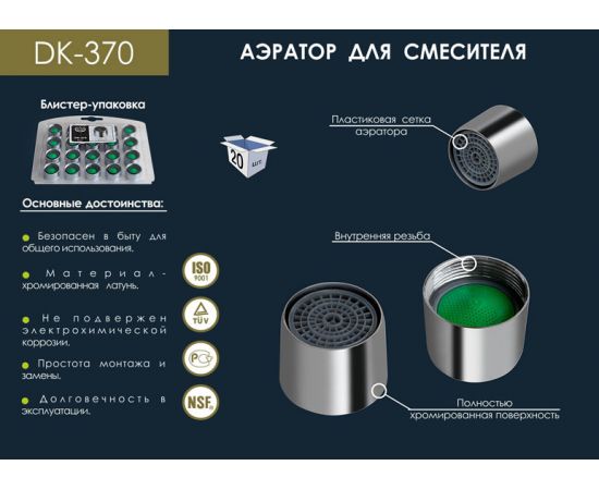 Минимальное количество для товара "DK-370 аэратор в блистере металлическая сетка бесшумный внутренняя резьба (упаковка 20шт)" 20.