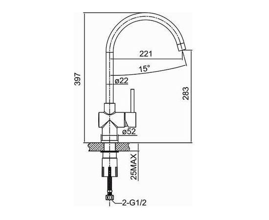Минимальное количество для товара "DK-7721-2А-747 Смеситель для кухни нержавейка 304, крепление гайка, комплектация: подводка" 1.