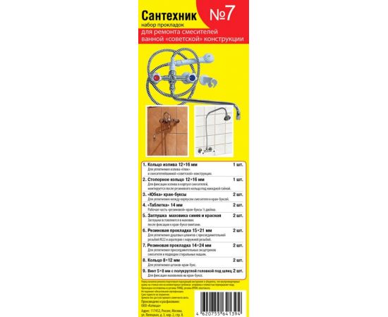 Минимальное количество для товара "Набор Сантехник №7 (для ремонта российских смесителей ванной комнаты) 2.7.7." 50.